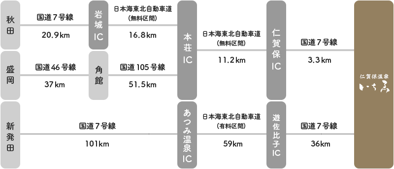 仁賀保温泉 いちゑは国道7号線沿いにございます。